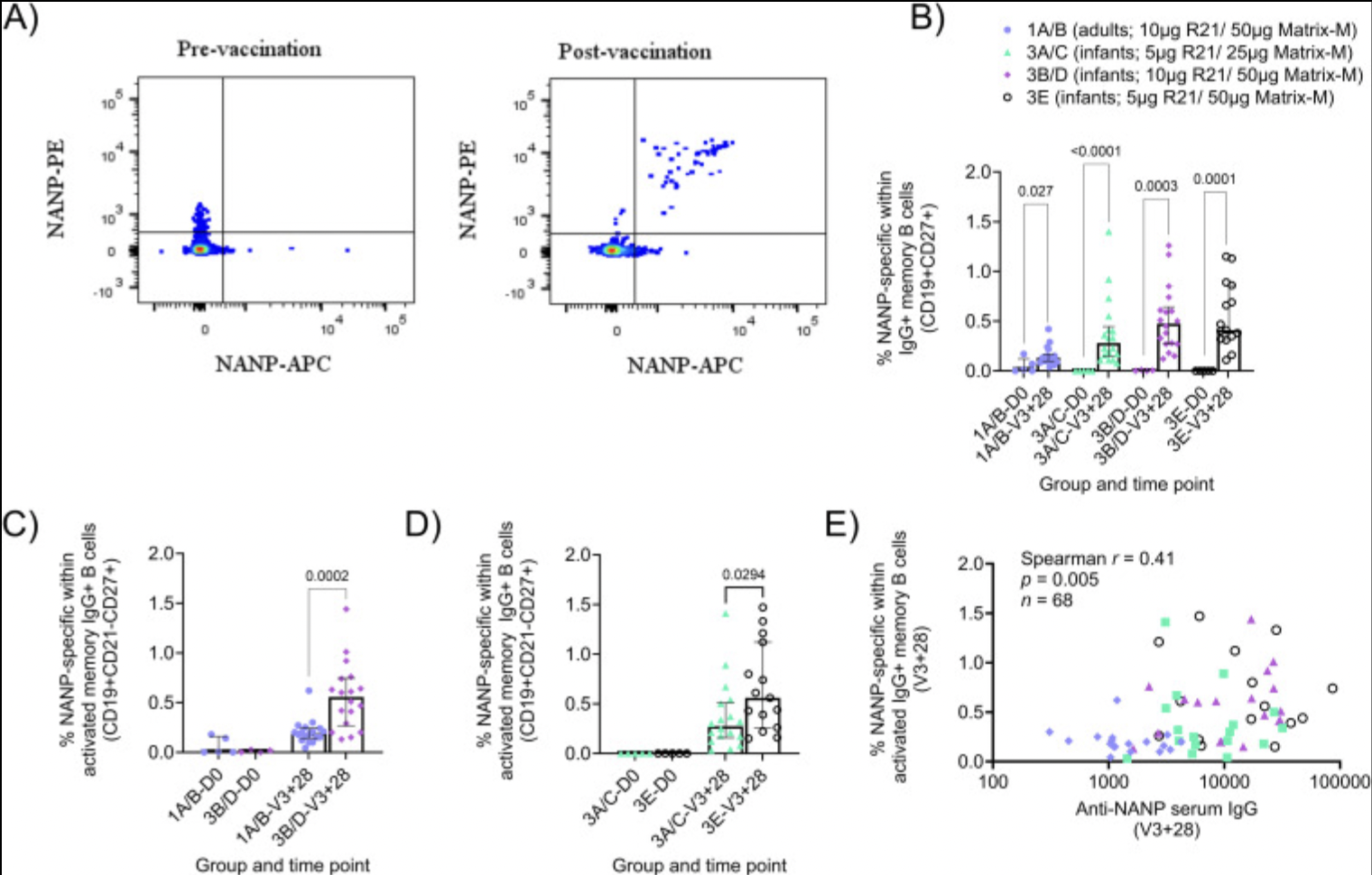 memory IgG+ B cells and higher serum IgG titers, particularly in infants, indicating