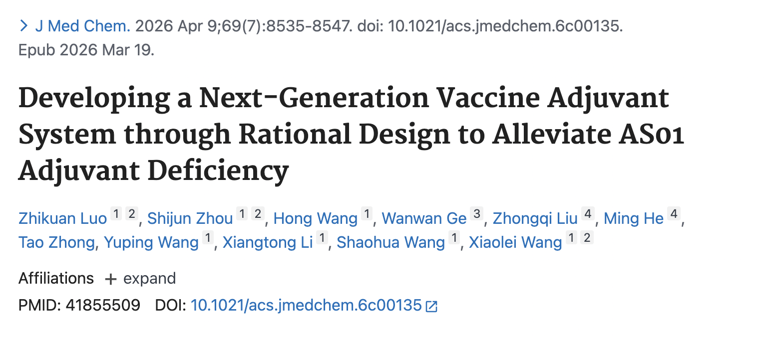 Luo, Z., et al. Developing a Next-Generation Vaccine Adjuvant System through Rational Design to Alleviate AS01 Adjuvant Deficiency. J Med Chem, 2026 Mar 19, PMID: 41855509